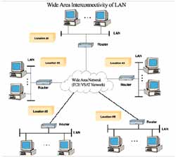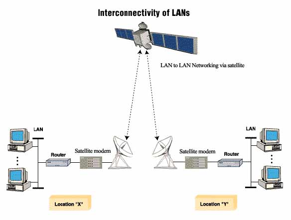 via VSAT  Today’s global business environment has created a need to provide WAN (Wide Area Network) interconnectivity between LANs (Local Area Networks) separated by great distances or even international borders. The ability to interconnect LANs across great distances can be hindered