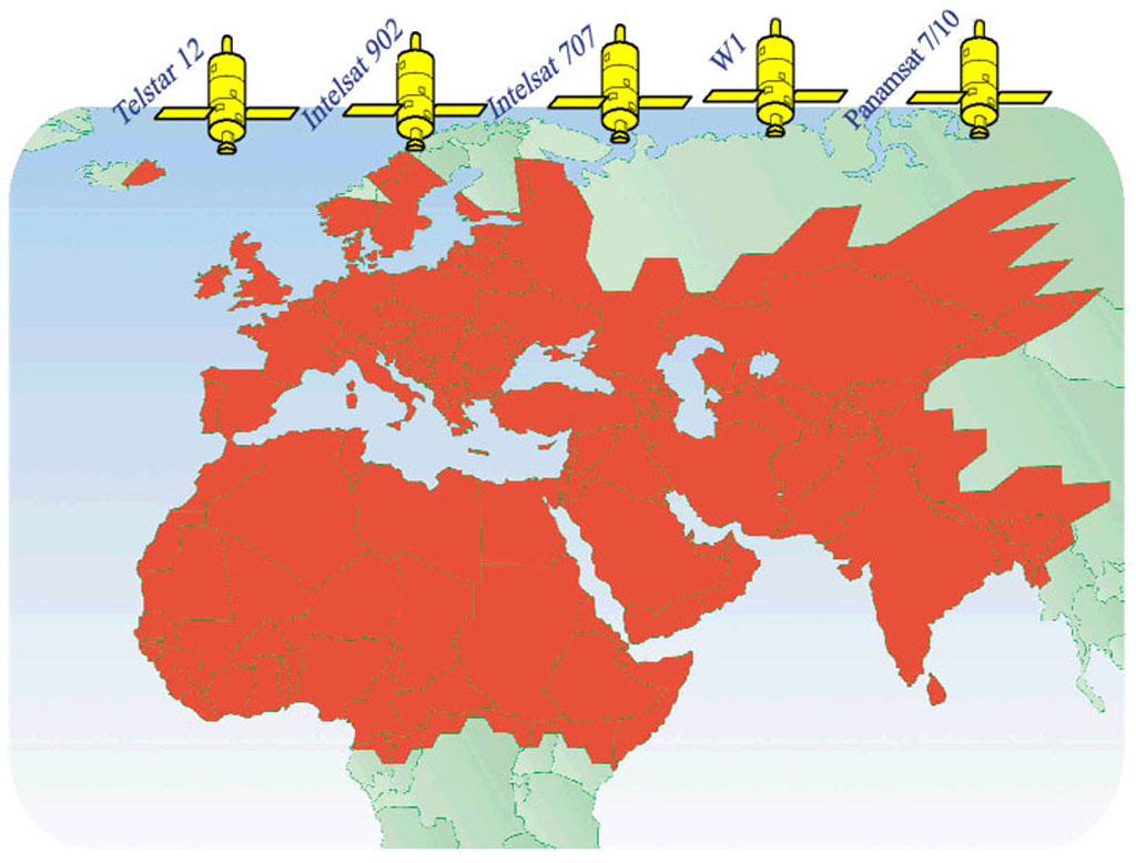 Internet Service Coverage FChorizon's service footprint extends over Middle East, Iraq, Iran, Eastern Europe, the Balkans and the former CIS States including Ukraine, Russia, Moldavia, the Baltic States, Georgia, Belarus, Azerbaijan as well as destinations in the Mediterranean basin, East Asia and Africa.The Duplex and simplex service is on Orion2 (Telstar 12), Eutelsat W1, Sesat, Intelsat 707, Intelsat 902, PanAmSat 7 and PanAmSat 10, using Ku-Band frequency and Asiasat using C-Band frequency. These diverse regions represent the high-growth 'emerging'